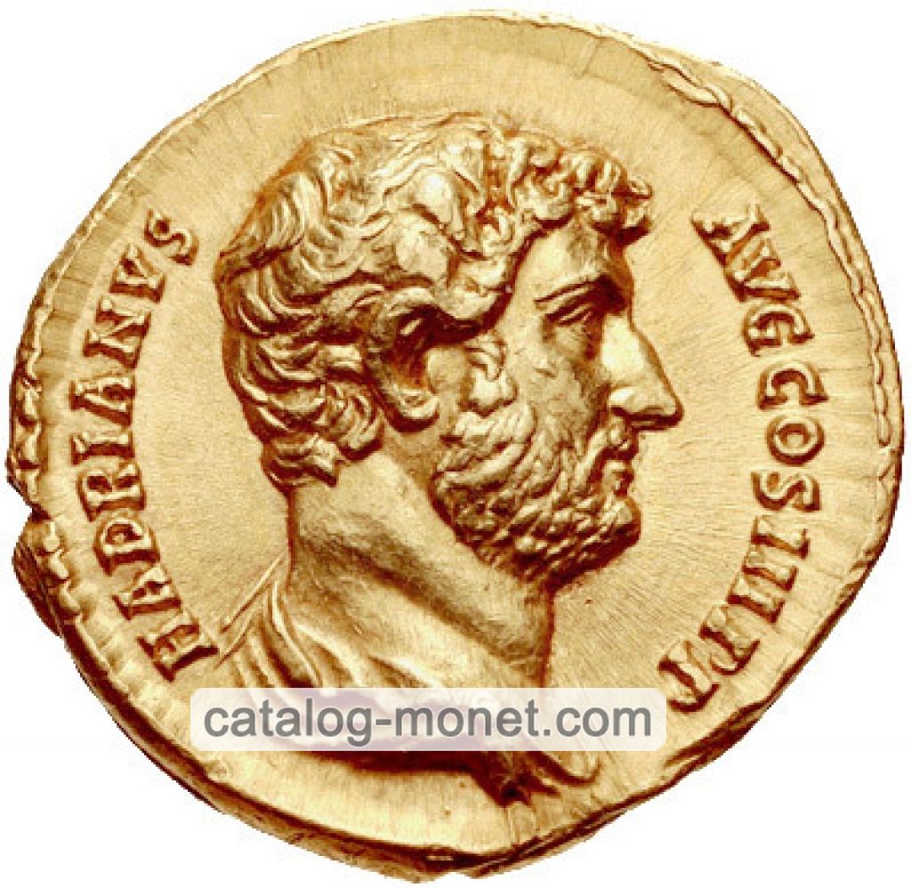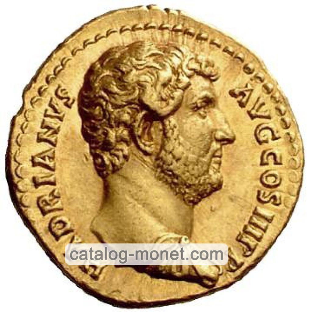 HADRIANVS AVG. COS. III P. P. — драпированный бюст Адриана с обнаженной головой вправо.