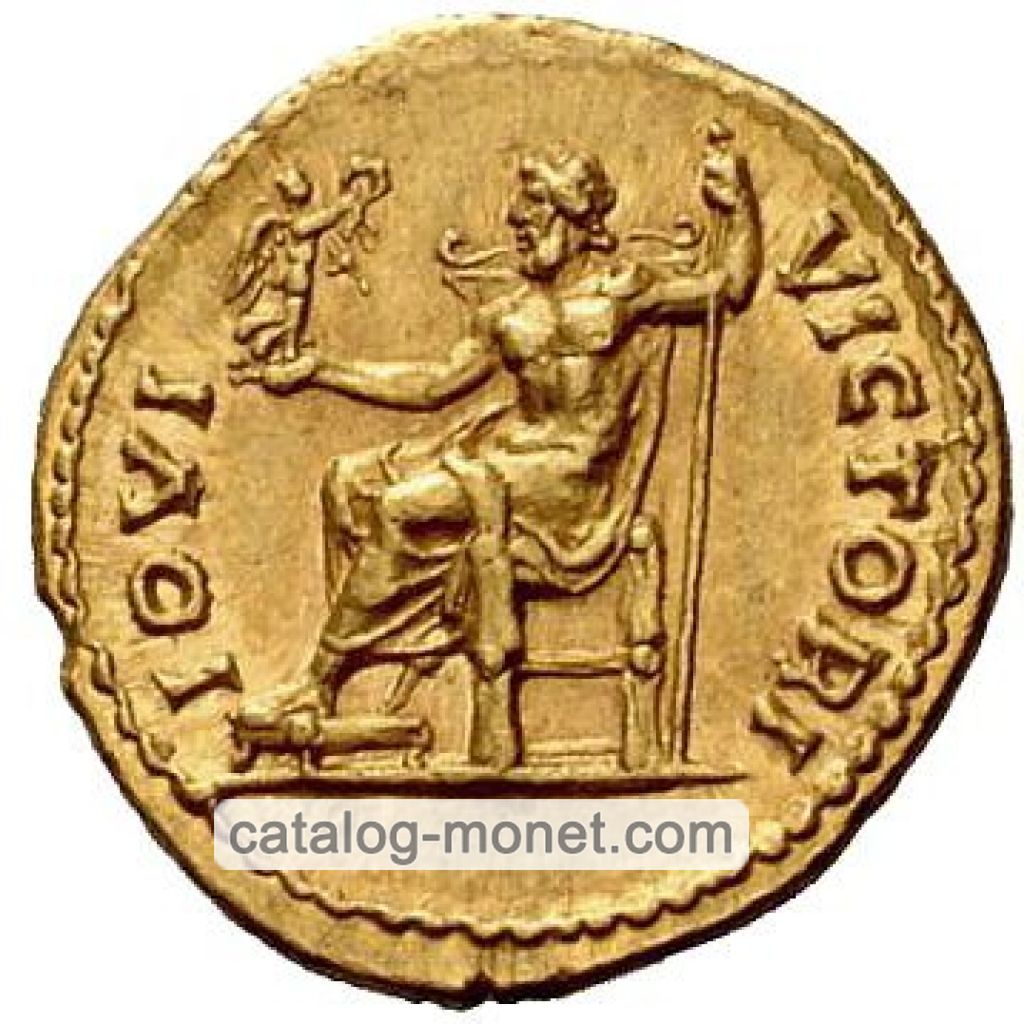 IOVI VICTORI — Юпитер обнаженный до талии сидит влево на троне держит Викторию на вытянутой правой руке и скипетр — в левой руке.