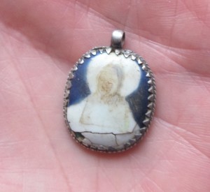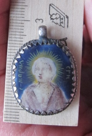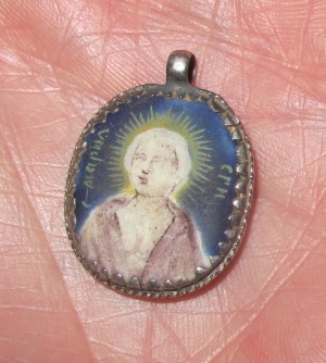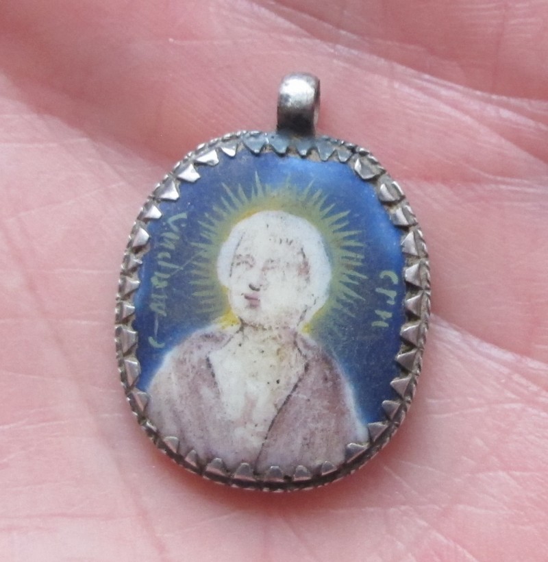 серебряный медальон Святая Мария с русской финифтью,ручная роспись по финифти, 18 век