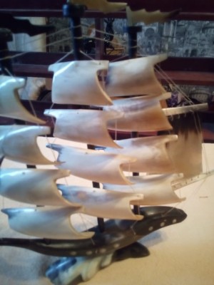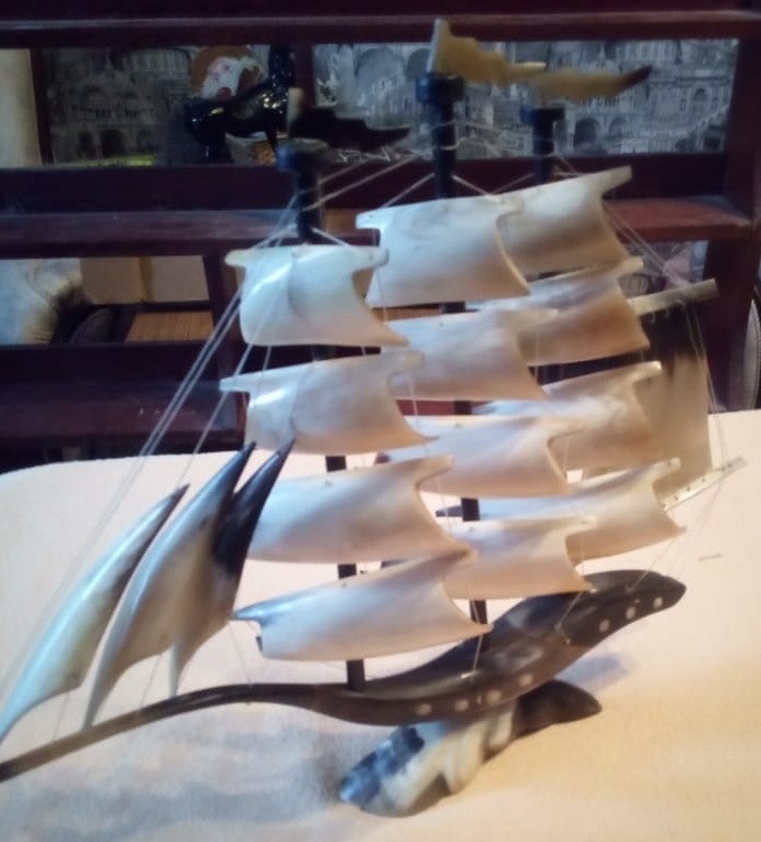 модель парусника, рог буйвола,авторская работа