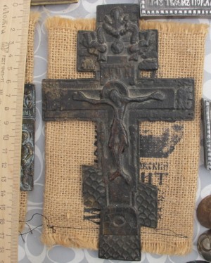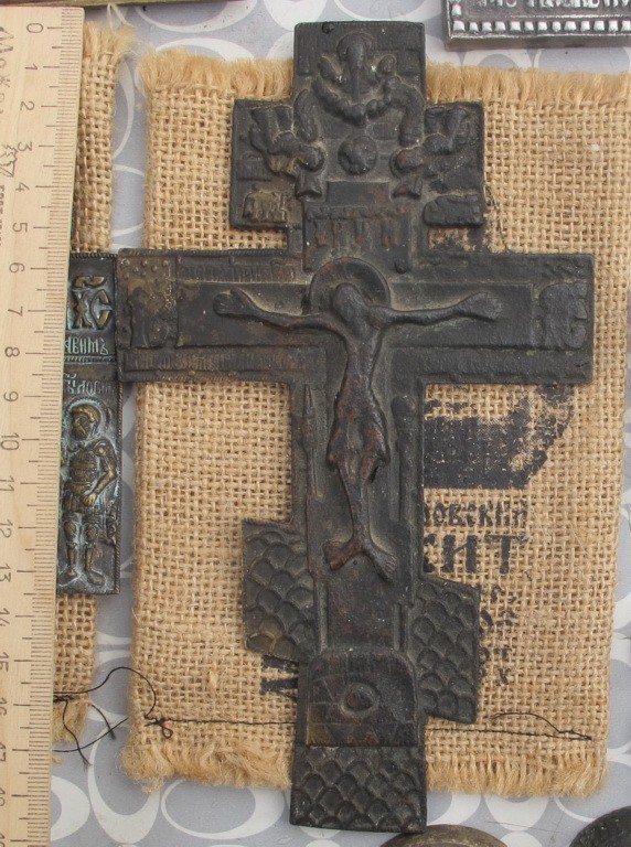 крест распятие бронзовый напрестольный, 19 век