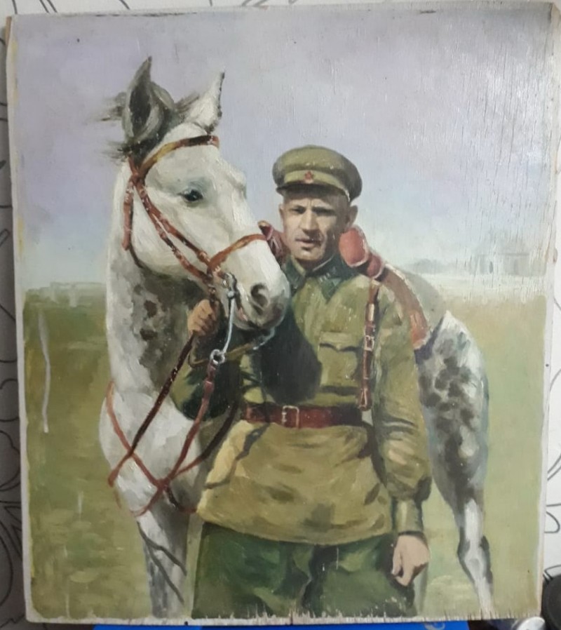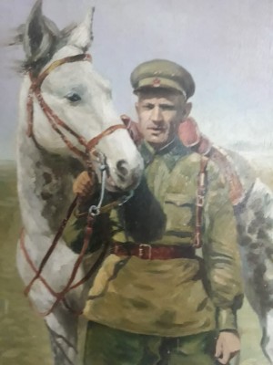 картина Служили два товарища,масло,фанера, авторская,1942 год