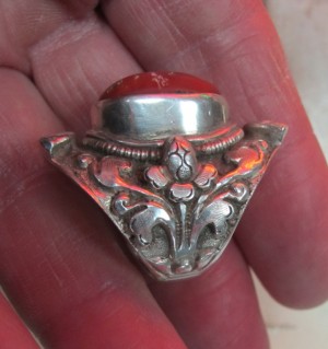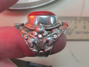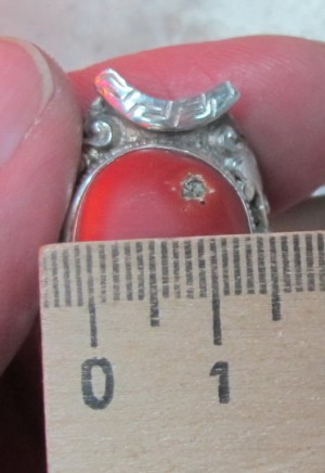 серебряный перстень с натуральным кораллом, авторская работа,унисекс, как для мужчины,так и для женщины