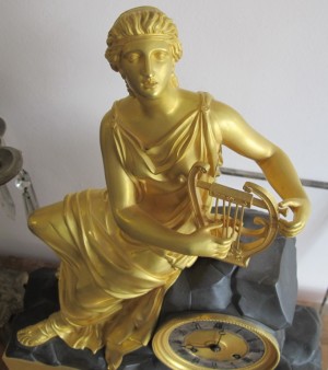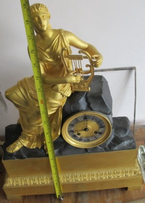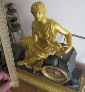 часы каминные Девушка с арфой,бронза,золочение,Франция, 19 век
