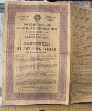 облигация в пятьсот рублей, 1916 год