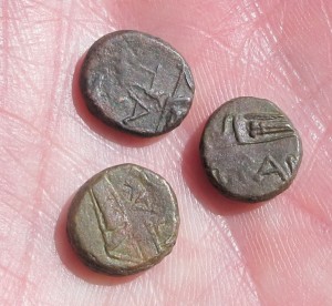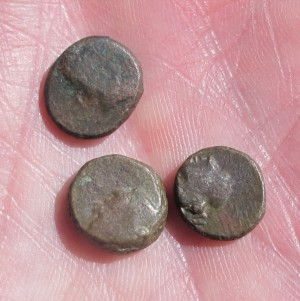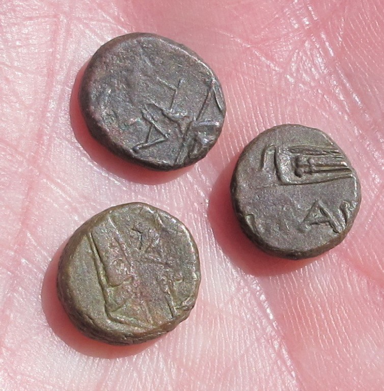 античные монеты медные дихалки, Боспорское царство, 3 штуки