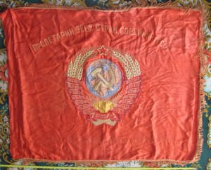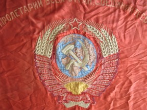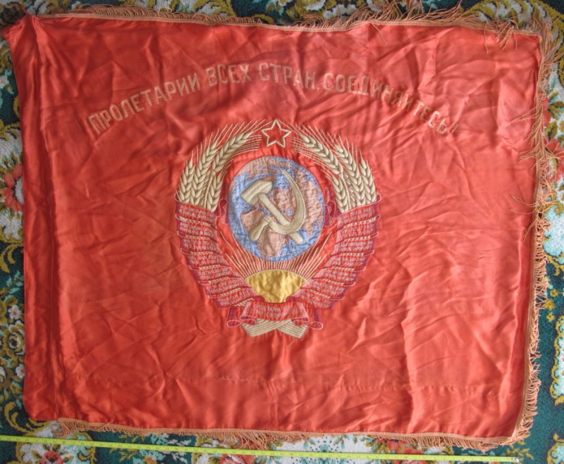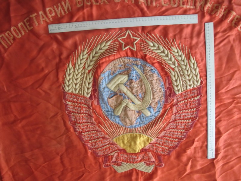 знамя Пролетарии всех стран соединяйтесь, ручная вышивка герба