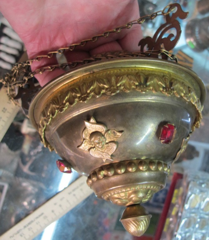 латунная лампада с ангелами,большая