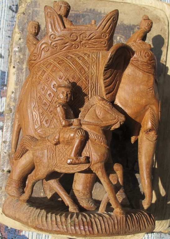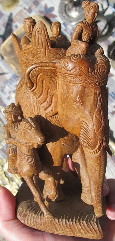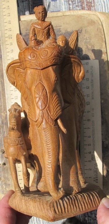 деревянная статуэтка Путешественники на слоне,резьба по сандалу,Индия