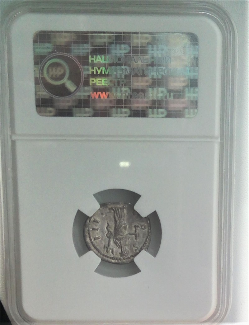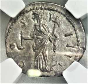 COS. IIII — Веста с покрытой головой в драпировке стоит влево держит симпулум в правой руке и палладий на плече — в левой.