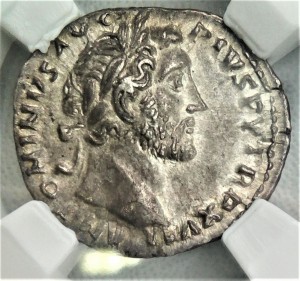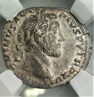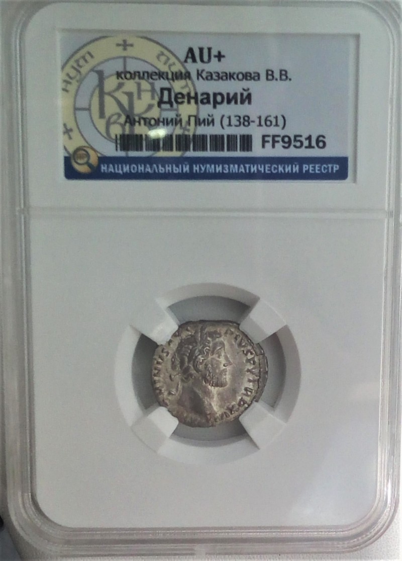 ANTONINVS AVG. PIVS P. P. TR. P. XVII — бюст Антонина Пия в лавровом венке вправо.