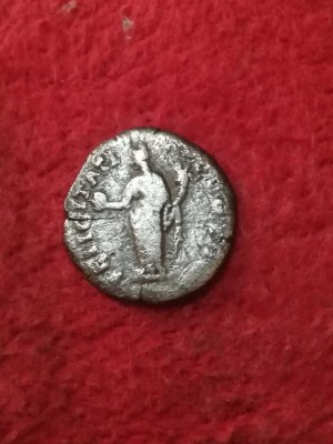 Реверс Філіцітас стоїть вліво тримає земну кулю на правій руці і ріг достатку в лівій. Власна знахідка на глибині 50 см.