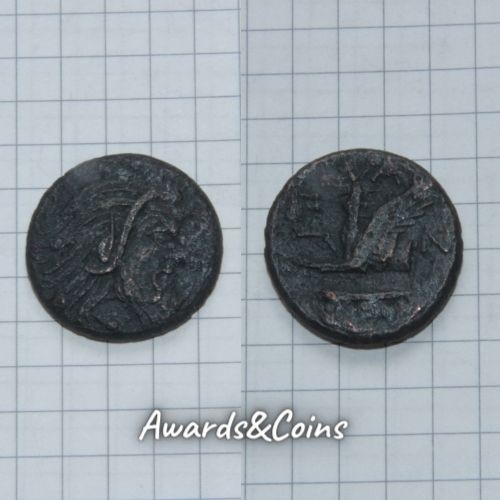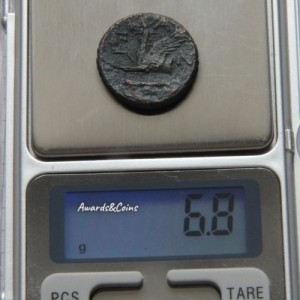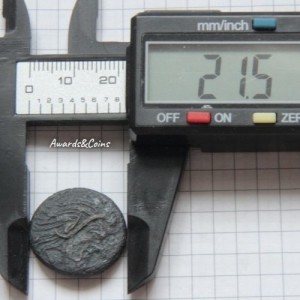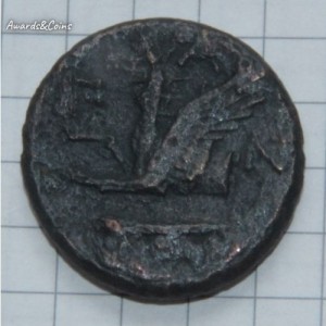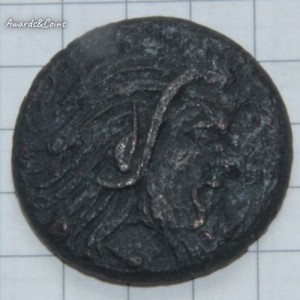 Аверс: голова бородатого сатира повёрнутая вправо.