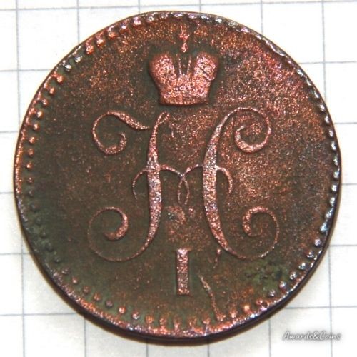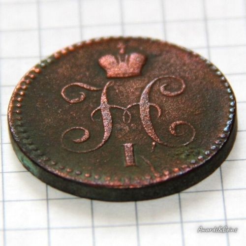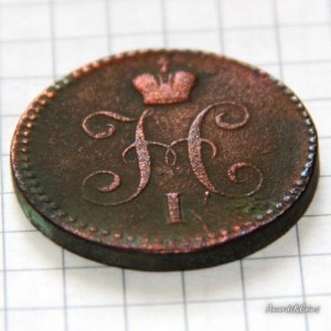 Аверс: В центре вензель Николая I. Над ним Корона Российской империи. По окружности канта имеются рельефные элементы, выполненные в виде точек.