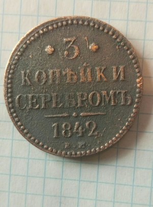 продаю 3 копейки серебром 1842 года ЕМ