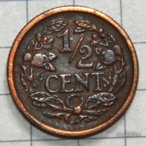 Продаю монету 1/2 цента 1909 г. Королева Вильгельмина. Нидерланды
